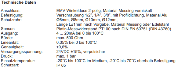 Engler Steuer 溫度傳(chuán)感器 PT100-10L